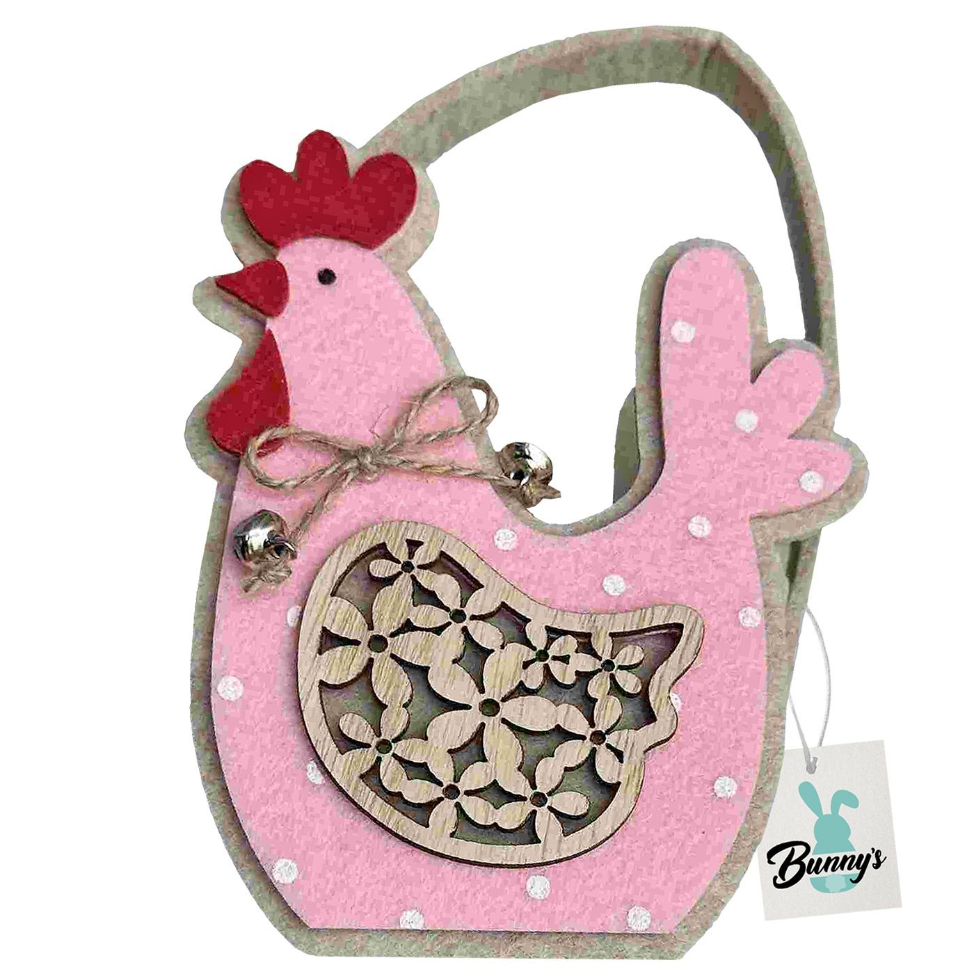 Καλάθι Τσόχινο με ροζ Ξύλινη Κότα με Καμπανάκι 19x11x7cm Bunny’s 932196