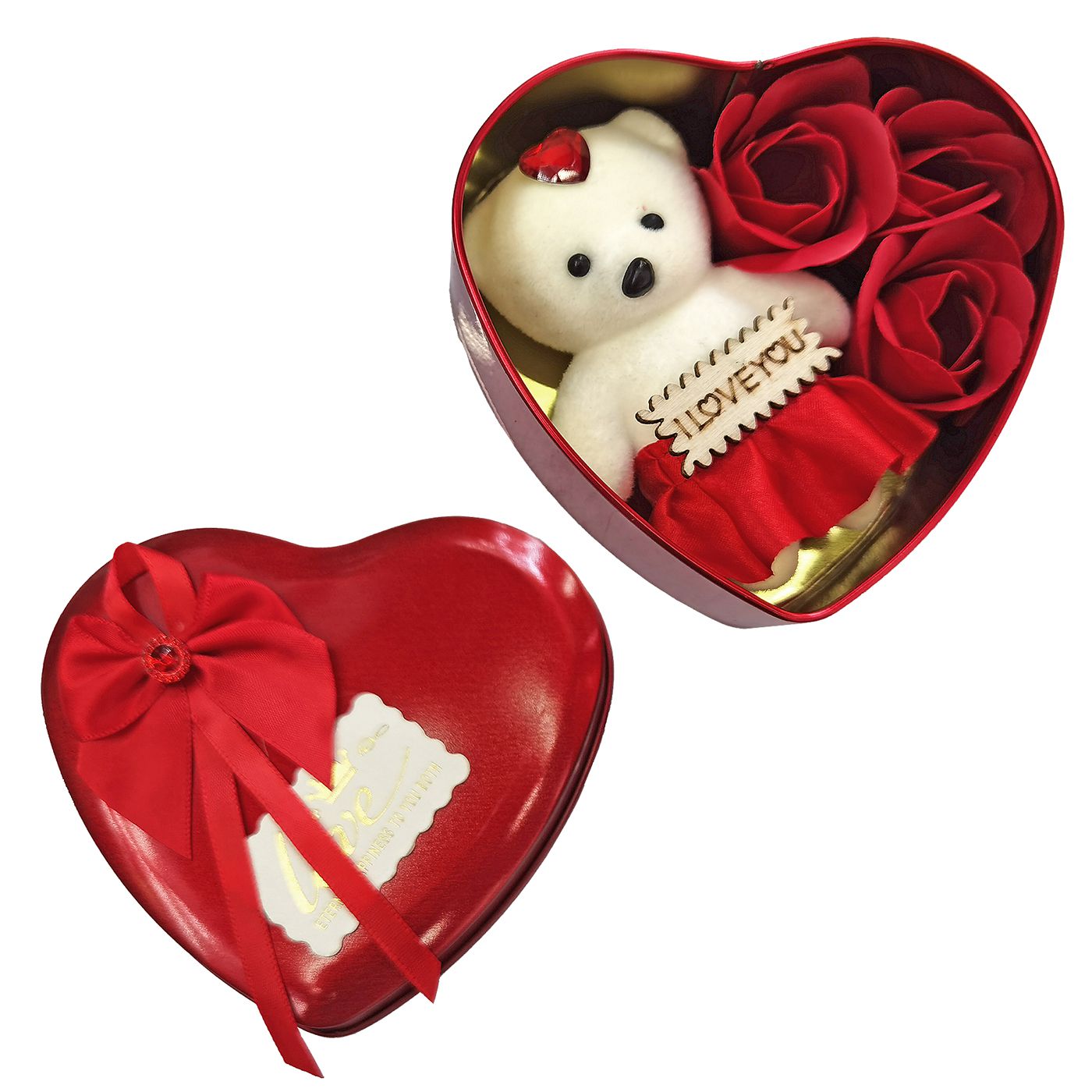 Κουτί Καρδιά Μεσαία 3 Τριαντάφυλλα & Αρκούδο 12x11x5cm Homie 423070