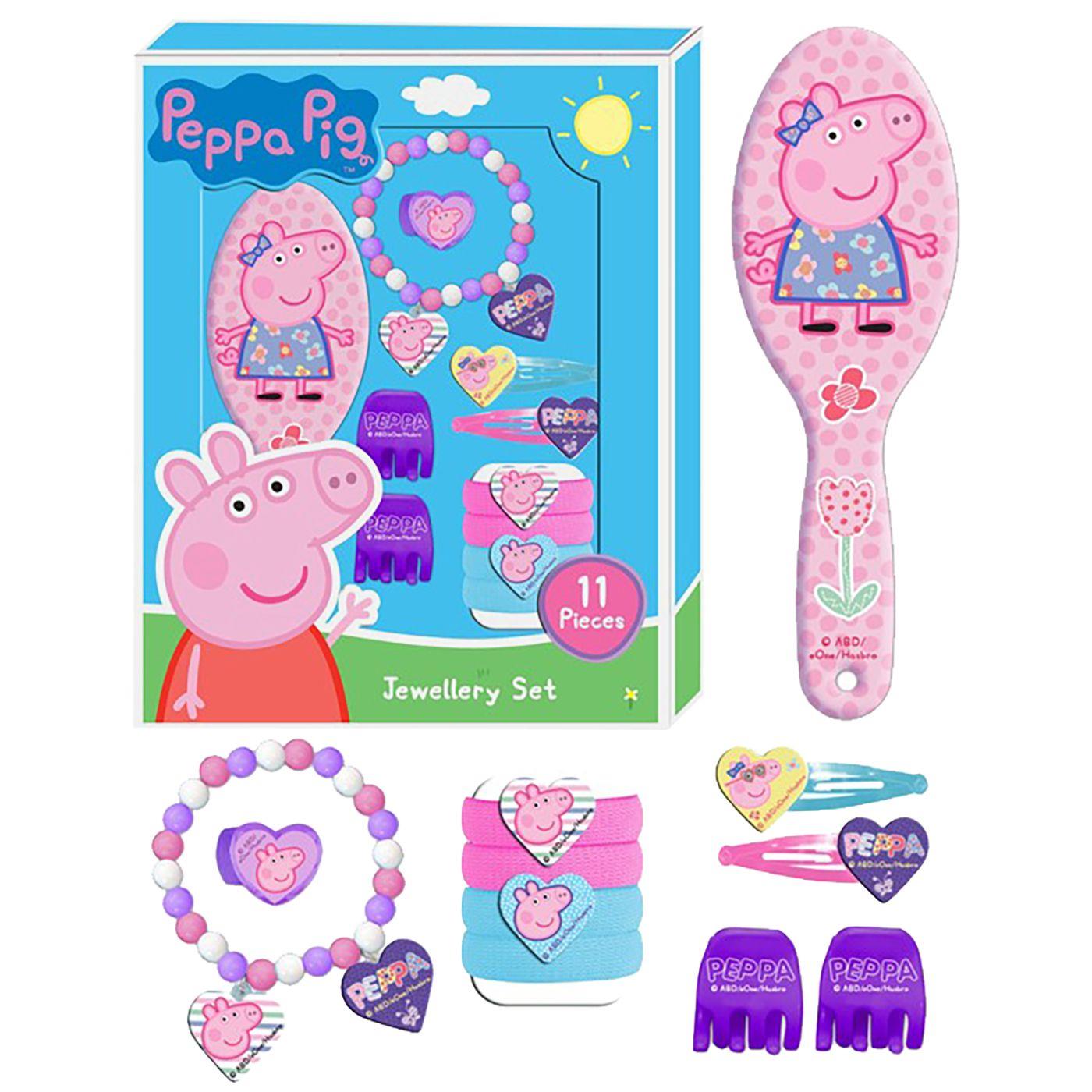 Σετ=11 τεμάχια (βούρτσα, βραχιόλι, δαχτυλίδι και κοκαλάκια). Peppa pig 24x18x3,5cm